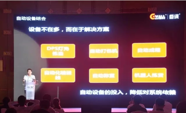 以百草味為例,部分產(chǎn)品使用機器人揀貨,上下兩層的自動化設(shè)備流水線、三層的耗材輸送線,自動稱重,自動打包機(自動包裝、打印名單、貼標),自動成箱設(shè)備;在現(xiàn)場自動化程度非常高,可以看到非常先進的“工廠式倉庫”;這兩天在會議上看到很多自動化的設(shè)備都已經(jīng)在使用,這些可以進行很好的揉合。